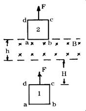 14.(16分)正方形线框在竖直向上的恒力F=21N的作用下,竖直向上通过如图所示的匀强磁场区域。磁场区高度h=lm,磁感应强度B=1T。线框边长L=lm,质量m=0.1kg。电阻R=1Ω。线框在初始位置1处于静止,cd边与磁场的下边缘相距为H。cd边刚进入磁场时,线框刚好做匀速直线运动。线框在末位置2,ab边恰在磁场边缘。求这个过程中恒力F做的功和线框产生的焦耳热。(取g=10m/s2)