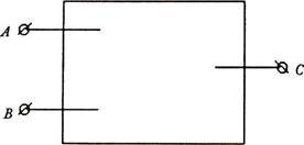 (2)经检测发现黑箱内没有电池,用多用电表的欧姆挡测量各接点间的电阻,结果如下:黑表笔接B点、红表笔接c点时阻值很小,反接时阻值很大;A、B间正反接时阻值均为R;黑表笔接A点、红表笔接C点时阻值比AB间阻值R略大,反接时阻值很大.试在图中画出黑箱内一种可能的电路.