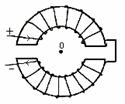 显像管的磁偏转线圈由两个半圆铁芯上绕以导线制成,如图所示.当线圈中通以图示电流,并在圆环中心(显像管的轴线方向)有垂直纸面向外的阴极电子束运动时,这些电子将 : (