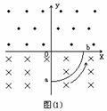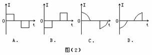 39.如图(1)所示,在x轴上方有垂直纸面向外的匀强磁场,在x轴下方有垂直纸面向里的匀强磁场.在xOy平面上有一个导线框,它由沿Ox线框由图示位置开始计时,以恒定的角速度在xOy平面内绕O点逆时针转动,在其转动一周的过程中,导线中的感应电流(以逆时针方向电流为正向)随时间变化的规律应是图(2)中的哪一个?: