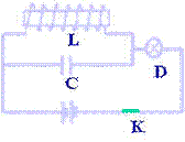 6.如右图所示,线圈L的自感系数为25mh(其直流电阻为零),电容器C的电容为40μF, D是一灯泡,K闭合后,D正常发光,K断开后LC回路产生振荡电流,若从断开K开始