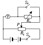 [解析] 电压表指针偏转角度与电压表两端的电压成正比,虽无刻度值但可以用格子数表示电压大小(或设单位刻度电压为U0).当断开S时,电压表偏转格数N1表示电源电动势的大小.S闭合时,N2表示R两端电压,根据闭合电路欧姆定律有