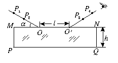 8.利用插针法测玻璃的折射率,实验中先将玻璃砖固定在水平桌面的白纸上,画出玻璃砖两侧界面MN、PQ,在玻璃砖的一侧插好P1、P2大头针后,某同学发现在P1、P2的同侧通过玻璃砖在图5-4-16所示位置也可观察到P1、P2的像.于是他在白纸上插大头针P3,使P3挡住P1、P2.同样方法,他又插下大头针P4,使P4挡住P3、P2和P1,取走玻璃砖,画P1、P2连线交MN于O点.P3、P4连线交MN于O′点,测出P1P2连线是与MN间的夹角α=30°.玻璃砖的厚度h=2.00 cm,OO′两点间的距离l=3.00 cm,则玻璃砖的折射率为_______.