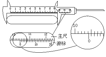 游标卡尺的读数部分由主尺(最小分度为1 mm)和游标尺两部分组成.按照游标的精度不同可分为三种:(1)10分游标,其精度为0.1 mm;(2)20分游标,其精度为0.05 mm;