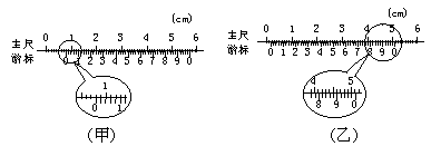 [例3](2003年新课程理综,23)用游标为50分度的卡尺测量一圆柱体的长度与直径,结果分别如图5-1-5(甲)、(乙)所示.由图可知其长度为_____,直径为_____.