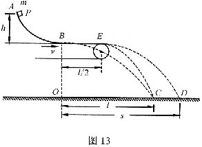 20.(10分)如图13所示,AB是一段位于竖直平面内光滑轨道,高度为h,末端B处的切线沿水平方向。一个质量为m的小物体P从轨道顶端处A点由静止释放,滑到B点处飞出,落在水平地面的C点,其轨迹如图中虚线BC所示。已知P落地时相对于B点的水平位移OC=l。