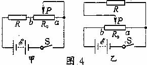 ;(2)对被测电阻R上的电流强度的控制情况有区别。对于图4甲有