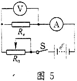若采用滑动变阻器的分压接法,因为R0>Rx,,会使操作不方便,因此应选择滑动变阻器的限流接法,电路如图5所示。