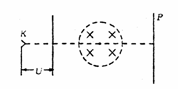 显象管的工作原理是阴极k发射的电子束经高压加速电场(电压为U)加速后,垂直正对圆心进入磁感应强度为B、半径为r的圆形匀强偏转磁场,如图所示,偏转后轰击荧光屏P,荧光粉受激发而发光,在极短的时间内完成一幅扫描,若去离子水质量不好,所生产的阴极材料中含有少量SO