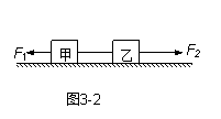 如图3-2所示,光滑水平面上有甲、乙两物体用绳拴在一起,受水平拉力F1、F2作用,已知F1<