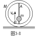 14.如图3-8,圆环质量为M,经过环心的竖直钢丝AB上套有一质量为m的球,今将小球沿钢丝AB以初速vo竖直向上抛出。致使大圆环对地无作用力,则小球上升的加速度为 。小球能上升的最大高度为 。(设AB钢丝足够长,小球不能达到A点)