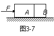 13.如图3-7,质量为2m的物块A,与水平地面的摩擦不计,质量为m的物块B与地面的摩擦因数为m,在已知水平推力F的作用下,AB做加速运动,则A和B之间的作用力为 。