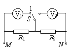 5、如图,MN间有恒定电压U0.R1、R2是两只阻值较大的定值电阻,V1、V2是两只完全相同的电压表,其内阻对电路的影响不可忽略.先后将单刀双掷开关接1和2,测得电压表V1、V2的示数分别是8V、4V.下列结论正确的是 ( )