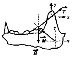 6、如图是为了说明哺乳动物颌的优越性而简化的力图。假设肌肉的力T和M与水平面成θ=450的角,B为关节提供的咀嚼作用力(假设B、T、M作用线全都交于点。因而满足共点力的平衡条件。