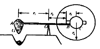 8、如图所示,是我国古代一种水力舂米机械。叫水堆,水流推动大轮转动,由转轴带杠杆,使古堆升起、释放、落下,这样的动作不断进行,就能实现舂米,若石堆重为G,OA距离为r1,OB距离为r2,BC距离为r3,大轮半径为r4,若不计摩擦,则在如图所示位置时,水对大轮边缘的作用为多大?