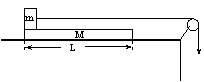 16.(20分)如图所示,一块质量为M、长为L的均质板放在很长的光滑水平桌面上,板的左端有一质量为m的小物体(可视为质点),物体上连接一根很长的细绳,细绳跨过位于桌边的定滑轮。某人以恒定的速率v向下拉绳,物体最多只能到达板的中点,而板的右端尚未到达桌边定滑轮处。试求: