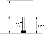 如图,箱子高H,箱中底部固定一直立细杆长为H/2,它们的总质量为M。现有一质量为m 小球穿在杆中,球与杆间有摩擦(为恒力)。若小球以V0的初速度从杆底向上飞起,刚好能达到箱顶,那么: