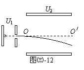 如图㈢-12所示,一个质量为m、电荷量为q的带电粒子从静止被电压U1加速后沿平行板电容器两极板的中线OO/ 射入电容器,并从右侧射出。电容器板长和极板间距离相等,两板间电压为U2,则该带电粒子在穿过电容器过程中的动能增量为_________。