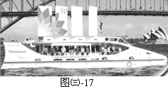 19.澳大利亚设计师设计并制造了一艘试验性的太阳能帆船,图㈢-17是它的照片。它既有普通的柴油发动机作为动力系统,又有四个特殊的风帆,每只高6m,宽1.5m,表面布满太阳能电池。这样,它既可以利用风力航行,又可以利用太阳能发电再利用电能驱动,特别适用于航速较低的旅游观光时使用。已知船在行驶中所受阻力跟船速的平方成正比。某次试航时关闭柴油发动机,仅靠风力航行时速度为2m/s,阻力大小f=1.5×103N。开动太阳能电池驱动的电动机后船速增加到3m/s。当时在烈日照射下,每平方米风帆上实际获得的太阳能功率为600W,电动机的效率为η1= 90%。设风力的功率不受船速影响。求:⑴电动机提供的机械功率是多大?⑵太阳能电池将太阳能转化为电能的效率η2是多少?