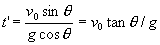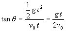 得 t=2v0tanθ/g