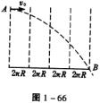 1.竖直放置的圆筒内壁光滑,半径为R,半径远小于R的小钢球,从筒口处的A点,以沿内壁水平切线方向的初速度v开始运动,恰好从A点的正下方的B点飞出,如图1-67所示,试问圆筒高度H的可能值是什么?