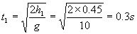 人从最高点下落至水面的高度是(10+0.45)m,可看成是自由落体运动,时间为
