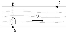 分析:船在河流中航行时,由于河水流动要带动船一起运动,船的实际运动是船在静水中的运动和船随水漂流的运动的合运动。所以,船的实际运动速度v是v2与v1的矢量和。