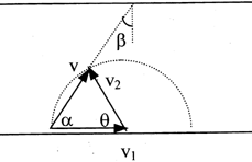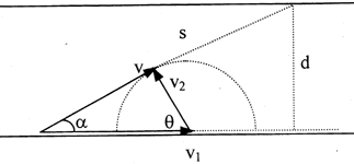 (2)当v2>v1时,船头斜向上游与岸夹角为θ,船速v可垂直河岸,此时