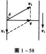 解析:如图1-58 v1为玻璃板运动速度,v2为切割刀的运动速度,v为合运动的速度,切割刀应与玻璃边缘成θ角逆向玻璃板运动方向切割,由图知