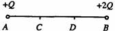 A、B两点各放有电量为十Q和十2Q的点电荷,A、 B、C、D四点在同一直线上,且AC=CD=DB.将一正电荷从C点沿直线移到D点,则