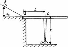 (18分)如图所示,光滑斜面的底端a与一块质量均匀、水平放置的平极光滑相接,平板长为2L,L=1m,其中心C固定在高为R的竖直支架上,R=1m,支架的下端与垂直于纸面的固定转轴O连接,因此平板可绕转轴O沿顺时针方向翻转.问: