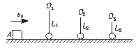 (15分)如图所示,滑块A的质量m=0.01 kg,与水平地面间的动摩擦因数μ=0.2,用细线悬挂的小球质量均为m=0.01 kg,沿x轴排列,A与第1只小球及相邻两小球间距离均为s=2 m,线长分别为L1、L2、L3…(图中只画出三只小球,且小球可视为质点),开始时,滑块以速度v0=10 m/s沿x轴正方向运动,设滑块与小球碰撞时不损失机械能,碰撞后小球均恰能在竖直平面内完成完整的圆周运动并再次与滑块正碰,g取10 m/s2,求: