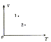 2.如右的V-T图上,有一定质量的理想气体原状态为1,经 过一系列变化后,末状态为2,比较1、2两个状态的压强 p1、p2,则有 ( )