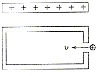 如右图所示的空心导体上方有一个靠近的带有正电的带电体,当一个重力不计的正电荷以速度v水平飞入导体内时,电荷在空心导体内将做