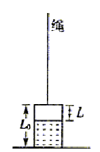 (14分)一质量为m=200kg,长L0=2m的薄底大金属桶倒扣在水池底部,如图. 桶内截面积S=0.5m2,桶壁及桶底的体积