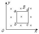 19、如图18所示,磁场方向垂直纸面向里,磁感强度B的大小与 y 无关,沿 x 方向每前进 1 m ,B均匀减小1 T,边长0.1 m 的正方形铝框总电阻为 0.25Ω,在外力作用下以 v = 4 m / s 的速度沿 x 方向做匀速直线运动,铝框平面跟磁场方向垂直,图中 ab 所在位置的B=5T,则在图示位置处铝框中的感应电流I=____A,1 s 后外力的功率P=____W。