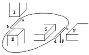 22、图21中,Ⅰ和Ⅱ是一对异名磁极,ab为放在其间的金属棒。ab和cd用导线连成一个闭合回路。当ab棒向左运动时,cd导线受到向下的磁场力。由此可知Ⅰ是____极,Ⅱ是____极,a、b、c、d四点的电势由高到低依次排列的顺序是____