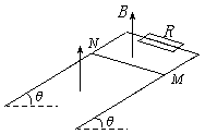 26、相距为L的两光滑平行导轨与水平面成θ角放置。上端连接一阻值为R的电阻,其他电阻不计。整个装置处在方向竖直向上的匀强磁场中,磁感强度为B,质量为m,电阻为r的导体MN,垂直导轨放在导轨上,如图25所示。由静止释放导体MN,求: