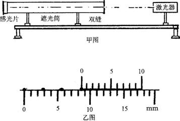 该同学测得L=1.0000m、缝间距a=0.220mm,用带十分度游标的卡尺测感光片上的点的距离时,尺与点的中心位置如乙图所示。