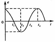2、(1991年全国高考题)一矩形线圈,绕垂直于匀强磁场并位于线圈平面内的固定轴转动。线圈中的感应电动势e随时间t的变化如图所示。下面说法中正确的是( )