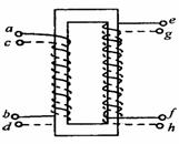 (1993年全国高考题)如图所示,一理想变压器的原、副线圈分别由双线圈ab和cd(匝数都为n1)、ef和gh(匝数都为n2)组成。用I1和U1表示输入电流和电压,I2和U2表示输出电流和电压。在下列四种连接法中,符合关系
