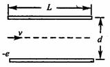 (1984年全国高考题)如图所示,有真空速度为v=6.4×107m/s的电子束,连续地射入两平行板间,极板的长度为L=8.0×10-2m,间距为d=5.0×10-3m。两极板不带电时,电子束沿两极板之间的中线通过。在两极板上加一个50Hz的交流电压U=U0sin