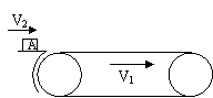 如图所示,一个质量为m,初速度为V2的木块A,冲到水平传送带上,传送带在外部机件的带动下以速度V1(V1>V2)保持匀速运动。木块A在传送带上滑行一段距离后,与传送带相对静止,也以速度V1运动。求这段过程中有多少内能生成?