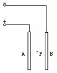 17、(12分)一种静电除尘器,由两块距离1cm的平行金属板A、B所组成,如图12所示,两板接上电压为9kV的直流电源。如果有一尘埃P,其质量为10mg,带电量为4.8×10–9C,试通过比较尘埃的受力情况,说明除尘原理。