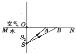16.(12分)如图12所示,MN是水与空气的界面,一点光源S在水面以下深1.0m处,现有两条光线SA与SB射向水面,水面以上为空气.已知∠OSA=37°,∠OSB=53°.水的折射率为n=4/3.(sin37°=0.60,sin53°=0.80,arcsin(3/4)=48°36′)