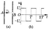 20.(15分)如图16(a)所示,两平行金属板M、N间距离为d,板上有两个正对的小孔A和B.在两板间加如图16(b)所示的交变电压,t=0时,N板电势高于M板电势.这时,有一质量为m、带电量为q的正离子(重力不计),经U=U0/3的电压加速后从A孔射入两板间,经过两个周期恰从B孔射出.求交变电压周期的可能值并画出不同周期下离子在两板间运动的v-t图线.