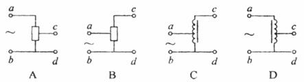 21. 如下图所示,a、b 为交流电源的输入端,c、d 为输出端,则输出电压大于输入电压的电路是