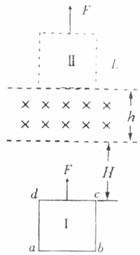 、边长 L=1m,线框平面与竖直平面平行,静止在“Ⅰ”的位置时,cd 边跟磁场下边缘相距为 H。当用一竖直向上的恒力 F=21N 向上提线框,该框由静止的“Ⅰ”位置,向上穿过磁场区,最后到达“Ⅱ”位置(ab 边恰好出磁场),线框平面在运动中保持在竖直平面内,设 cd 边刚进入磁场时,线框恰好做匀速运动。(g 取 10m/s2)