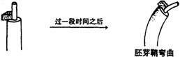 (二)取一段胚芽箱中间部分,上面放合IAA的琼脂块,下面放空白琼脂块