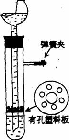 (30分)用图示的装置制取氢气,在塑料隔板上放粗锌粒,漏斗和带支管的试管中装有稀硫酸,若打开弹簧夹,则酸液由漏斗流下,试管中液面上升与锌粒接触,发生反应。产生的氢气由支管导出;若关闭弹簧夹,则试管中液面下降,漏斗中液面上升,酸液与锌粒脱离接触,反应自行停止。需要时再打开弹簧夹,又可以使氢气发生。这是一种仅适用于室温下随制随停的气体发生装置。
